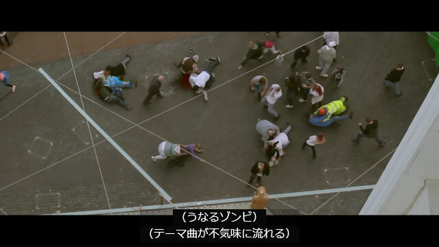 ゾンビに見つめられているため、じっと動かずに我慢しなければならないというシチュエーションが面白くも新しい。