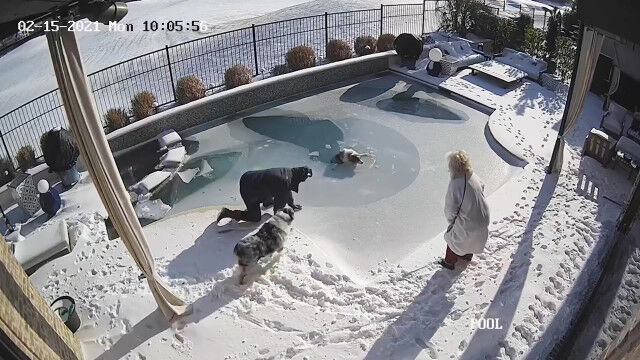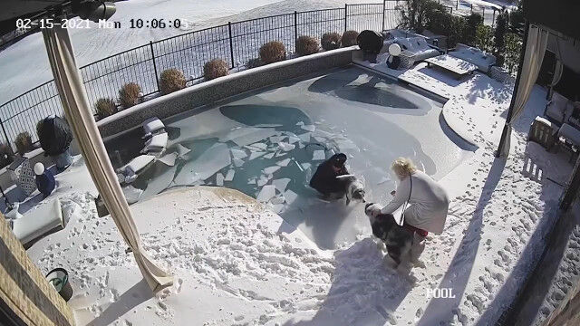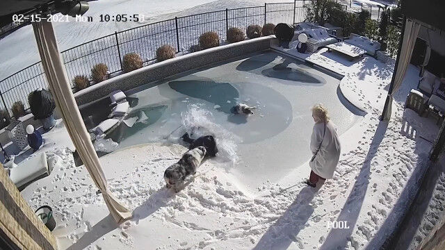 - 凍ったプールの氷面が割れて犬が転落。なんとか助け出すまでを捉えた防� $ArticleTagsLoop$>
