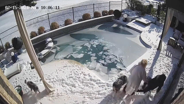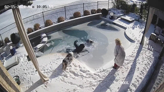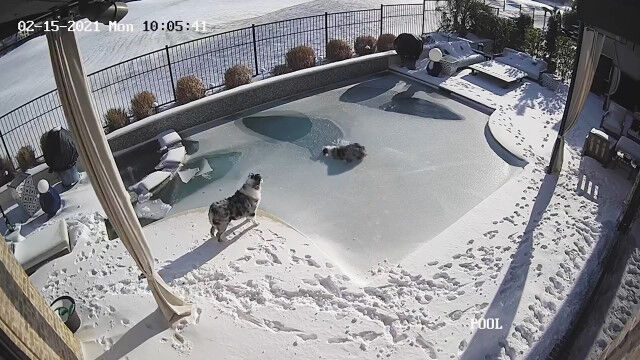 アメリカ、テキサス州の民家にて、凍りついた庭のプールに乗ったオーストラリアン・シェパード犬が、氷を踏み抜いて溺れてしまう事故。