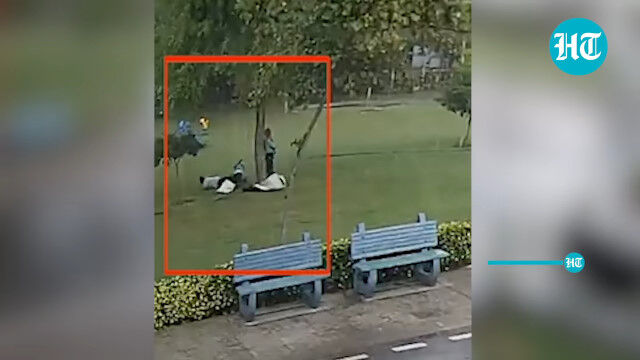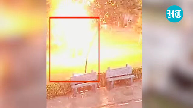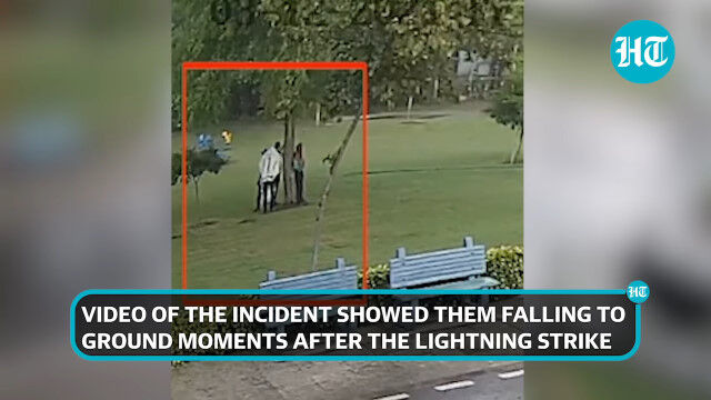 インドの都市、グルグラムで起きた、落雷により4人の男性が負傷した事故の瞬間。
