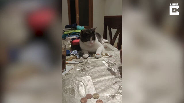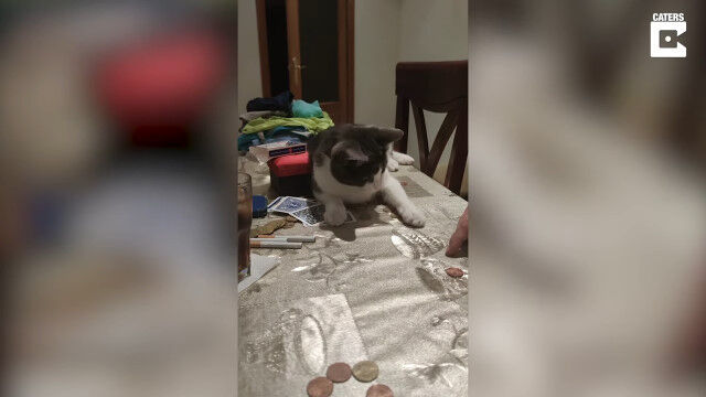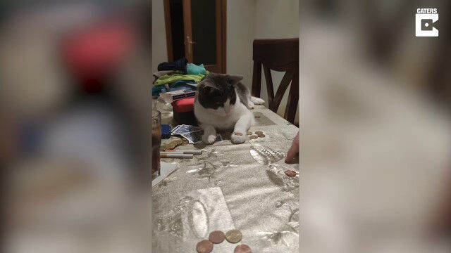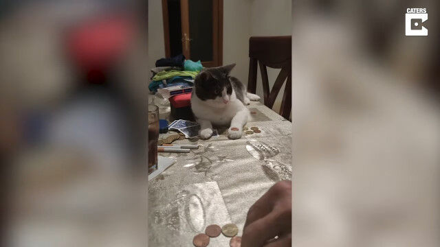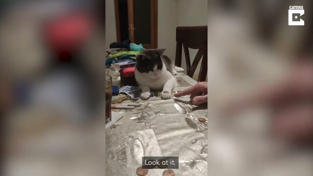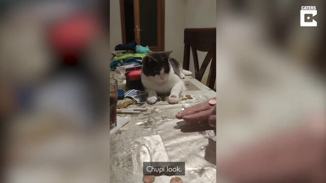 人間が実際にやってみせたお手本の通りに同じトリックを成功させる猫が賢くもかわいい。