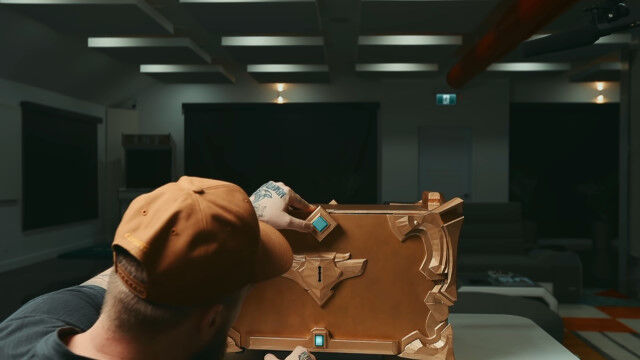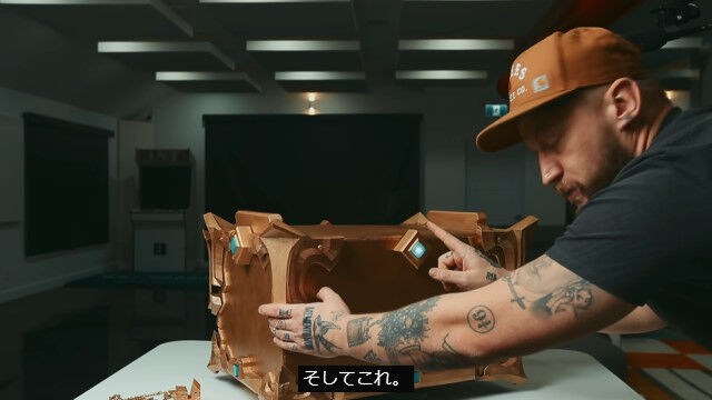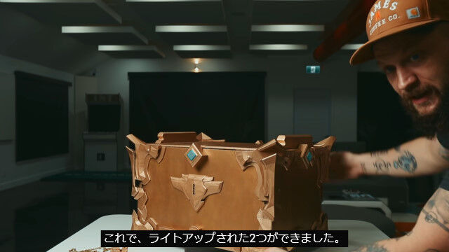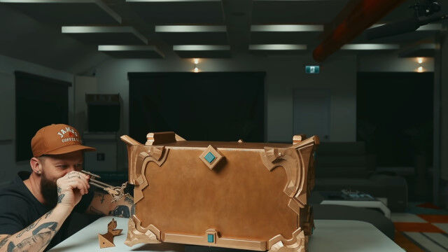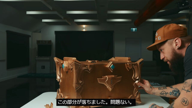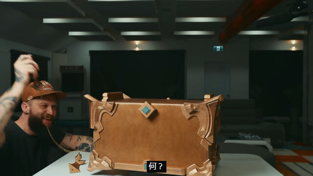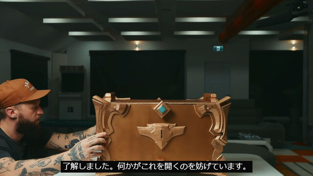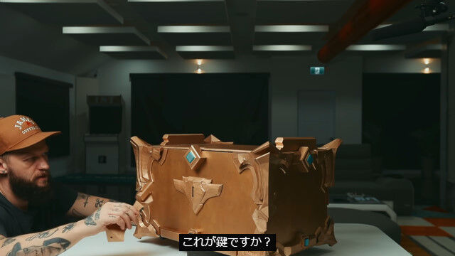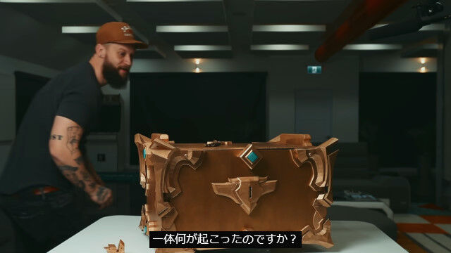 「リーグ・オブ・レジェンド」などの開発会社、ライアットゲームズから贈られたというパズルボックスに挑戦するクリス・ラムゼイさん。