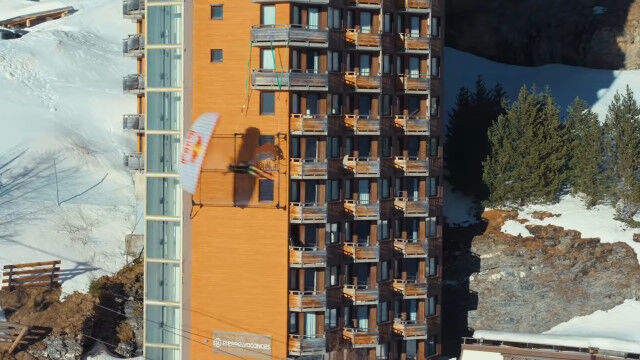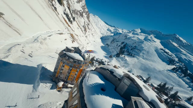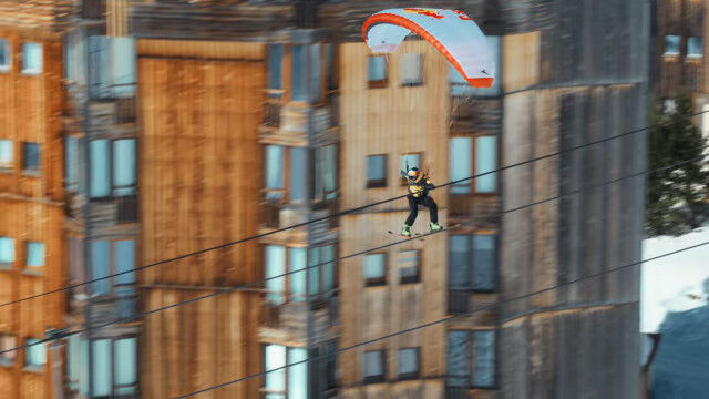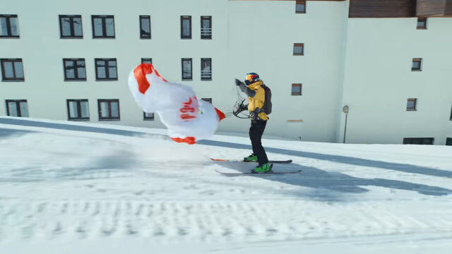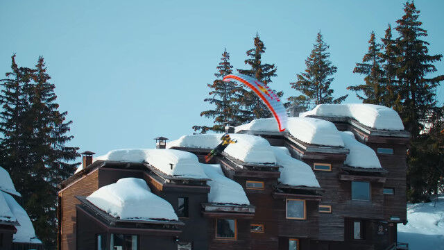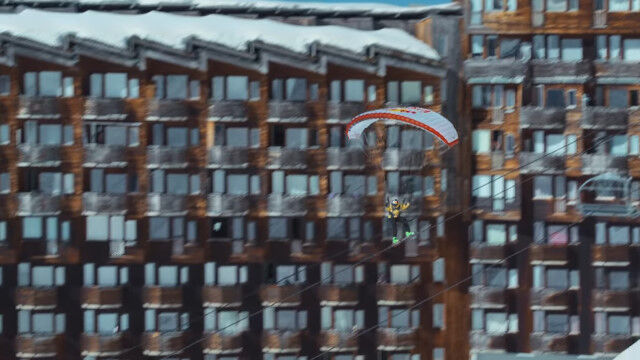 ビルの屋上も外壁も足場とする、パラグライダーとスキーで自由自在、縦横無尽に飛び滑る映像が凄い