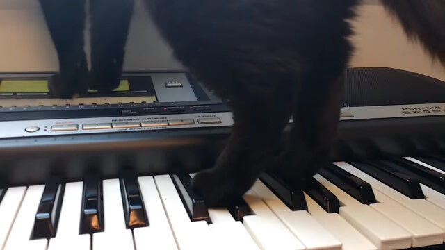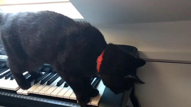 #ホラー映画に使われそうな音楽を偶然奏でた黒猫