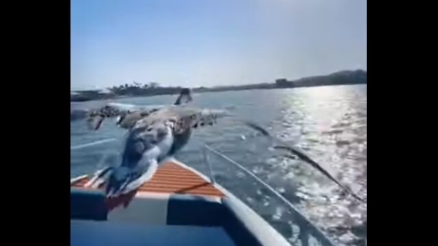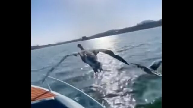 雁の群れと一緒に飛んでる気分。V字低空編隊飛行にボートで参加