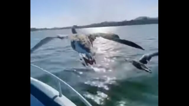 #雁の群れと一緒に飛んでる気分。V字低空編隊飛行にボートで参加