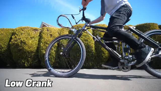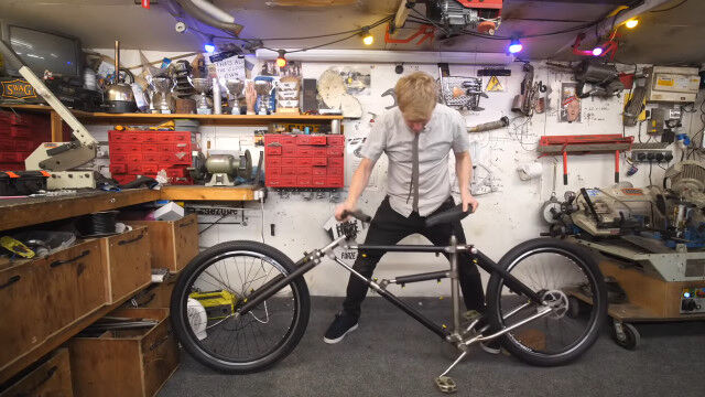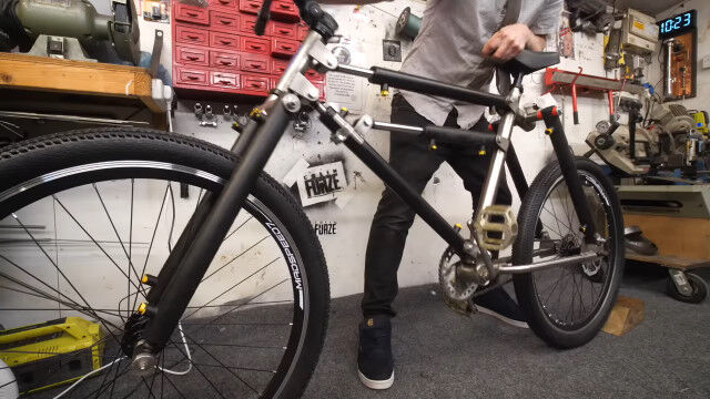 発明が大好きで技術力を持つだけでなく、行動力もあふれるコリン・ファーズさんが自作した、フレームの形を自由に変形できる改造自転車。