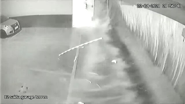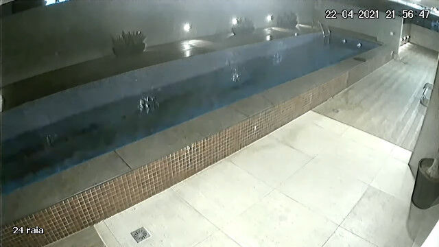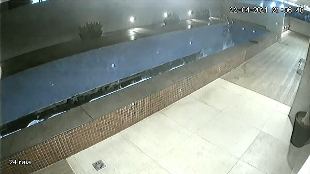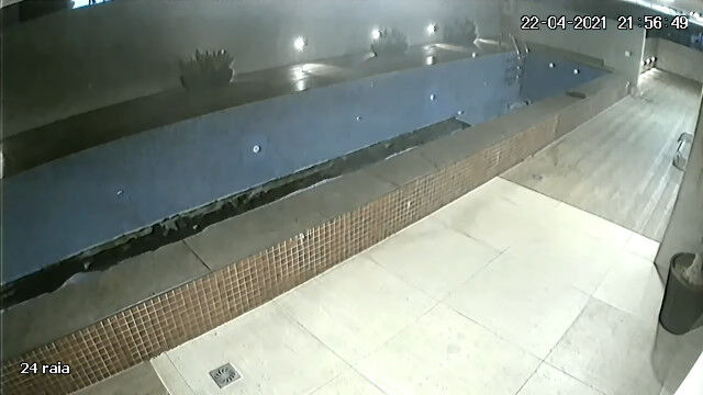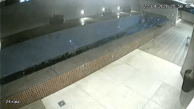 駐車場の上の階にプールが設置されているマンションの防犯カメラ映像。