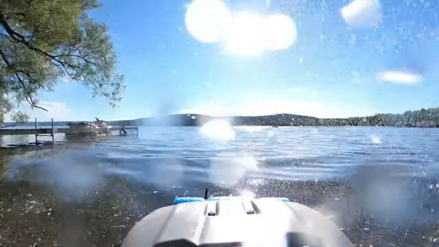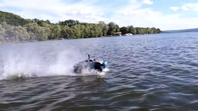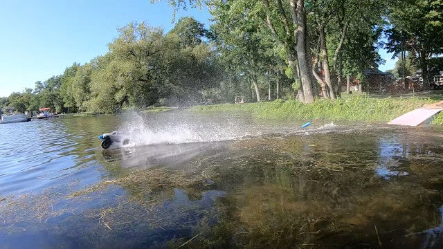 ラジコンカーで水上を走り、その走行距離で世界記録更新を狙うチャレンジ。