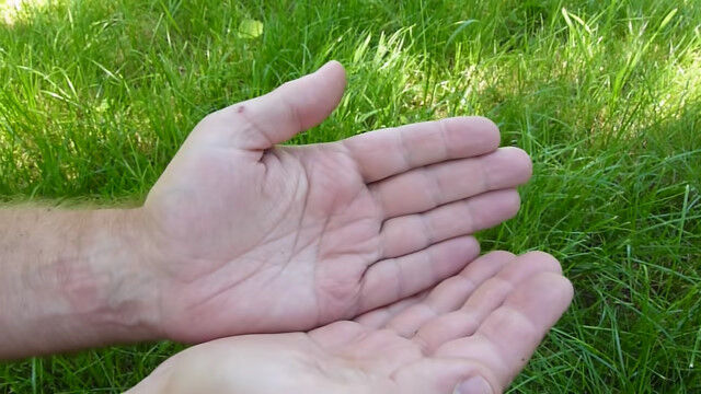 #手のひらの上で死んだふり。擬死行動をとるヨーロッパコマドリ
