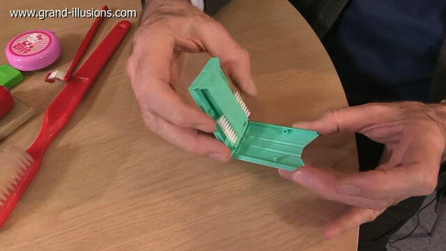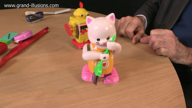 さまざまな玩具をコレクションし、紹介するティムさんが、ブラシを使った商品やオモチャを紹介。