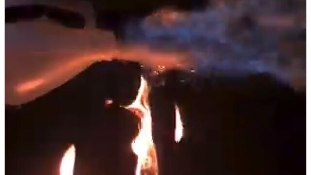 可燃性の液体が入ったボトルを、直火の炎へと注ぐと、ボトルの注ぎ口から前方へ爆発的に炎が噴射されることがある。