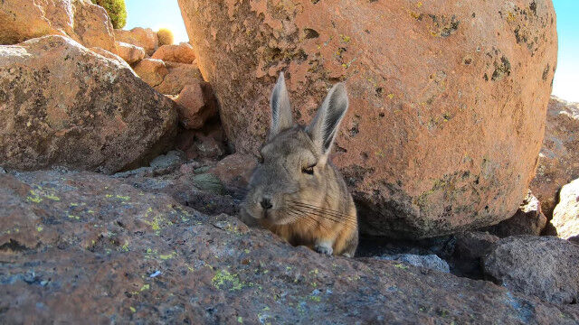 チンチラとウサギをかけ合わせたような見た目は愛らしいけれど、生息数が多く、現地では食用と毛皮目的で狩猟の対象であるとか。