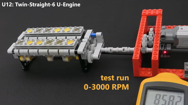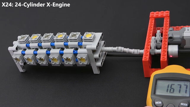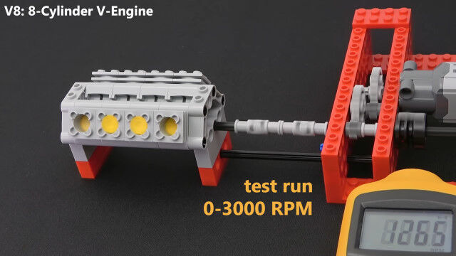 様々なデザインのエンジンをレゴで製作、3000rpmで回転させて違いを見てみた