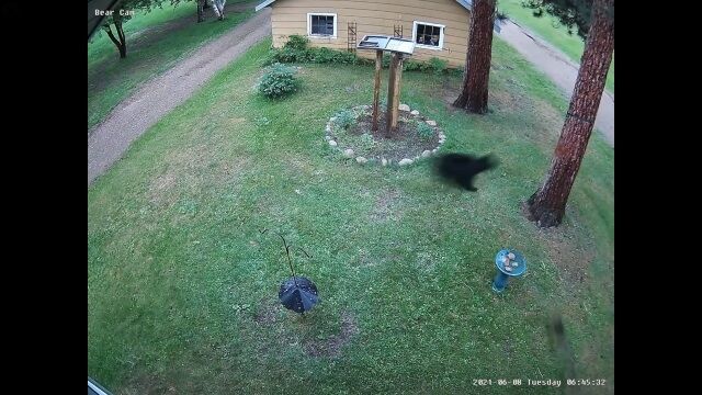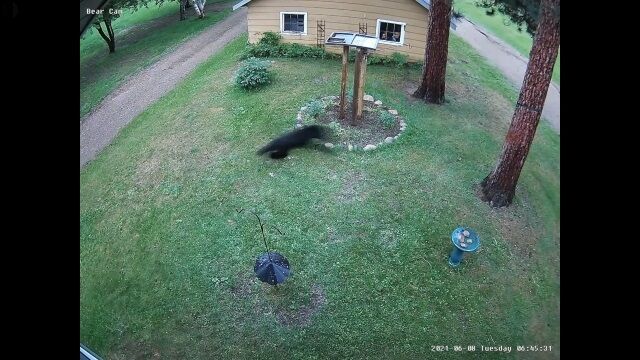 キッチンのドアから野生のクマが侵入。2匹の犬に追い出される様子をとらえた防犯カメラ映像