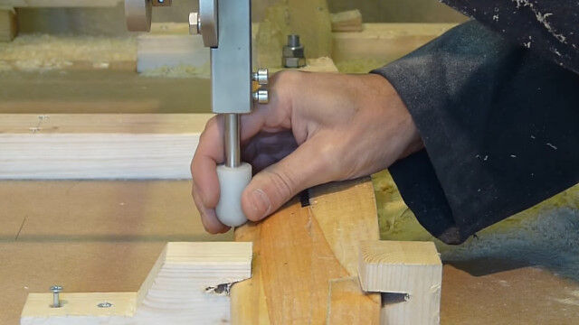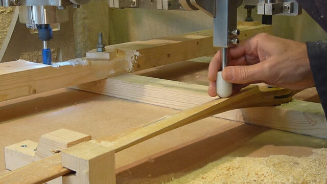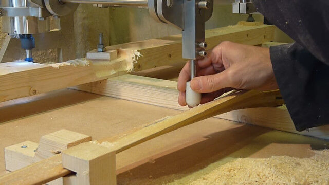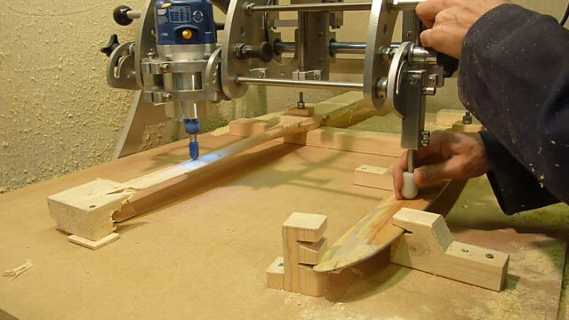 ベースの形状をなぞっていくだけで、木材が削られていく仕組みが、シンプルながらも素晴らしい。