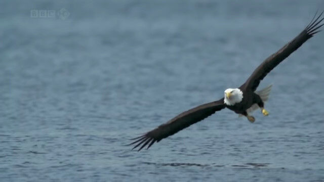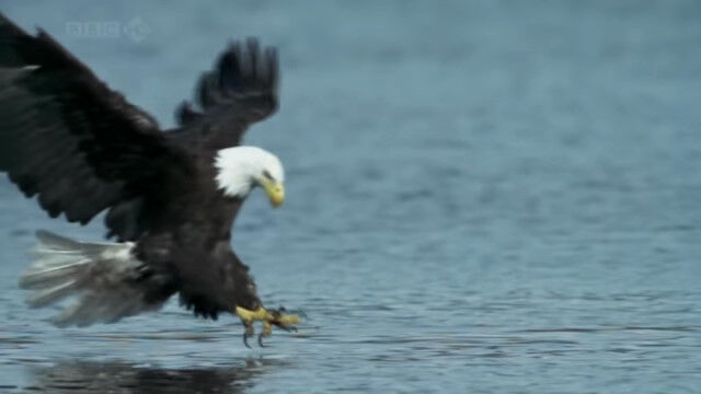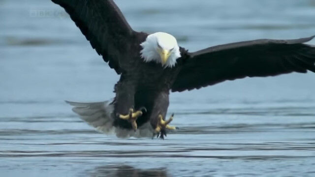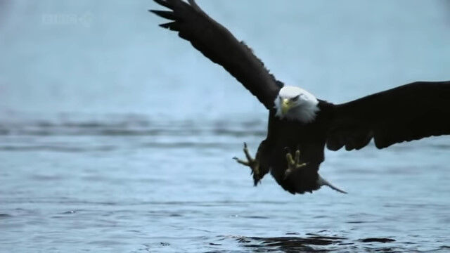 - 水面スレスレを低空飛行するハクトウワシが魚を捕らえる瞬間のスローモ� $ArticleTagsLoop$>