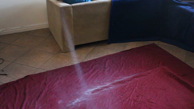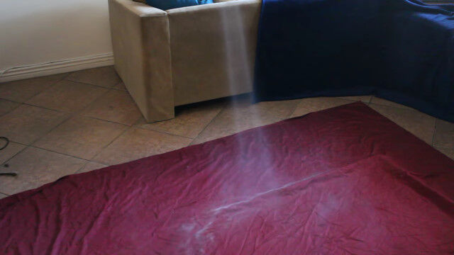 煙を作り出すフォグマシンに数カ所穴を開けたPVCパイプを接続し、パイプの上をカーペットで覆う。