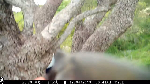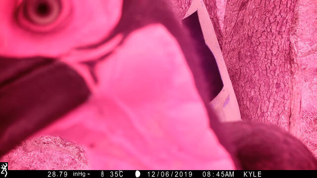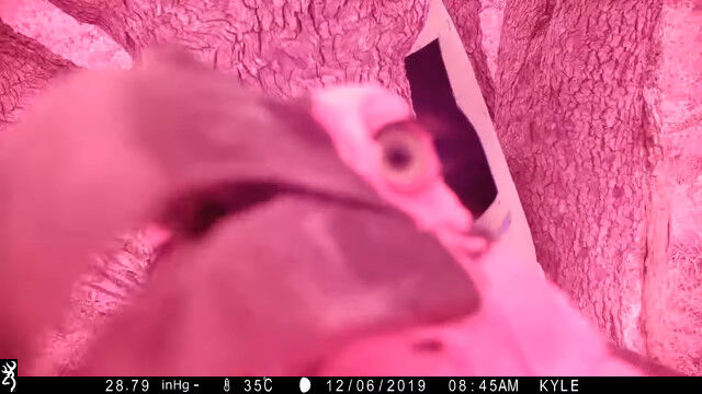 樹上の巣穴を撮影するように設置されたこのカメラも、レンズ部分に映る姿が敵だと認識されてしまったようで、執拗に攻撃され続けることに。