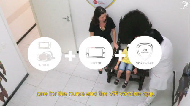 しかし、子供たちを守るためには予防接種は必要不可欠なもので、問題解決のために考えられたのが、VRヘッドセットで仮想空間の映像を見せること。