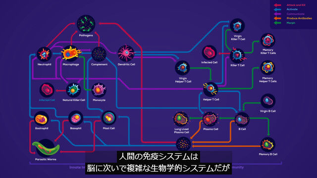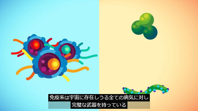脳に次いで複雑な人間の免疫システムについて、わかりやすく解説したアニメーション。