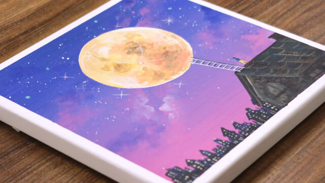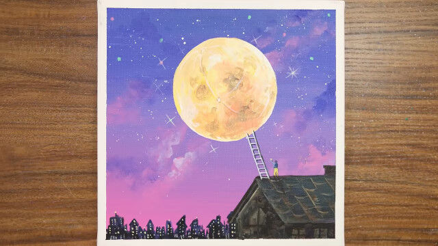 絵が描きあがっていく過程が気持ちいい。小さなキャンバスに描いた「満月にのぼる少年」
