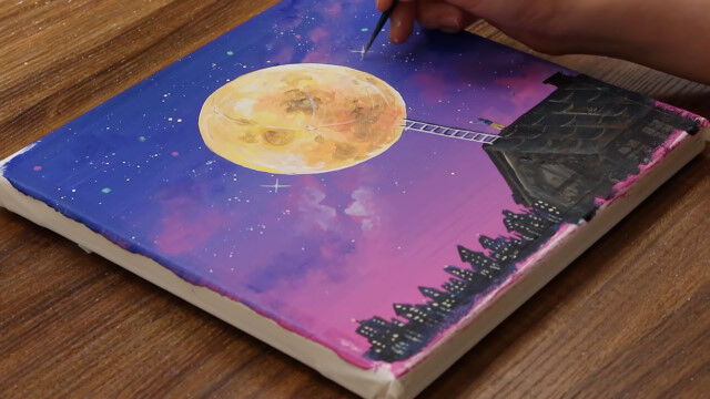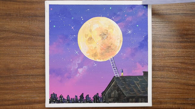 Acrylic Painting on Canvas #764|A Boy Who Goes Up To The Full Moon|Satisfying Relaxing ASMR