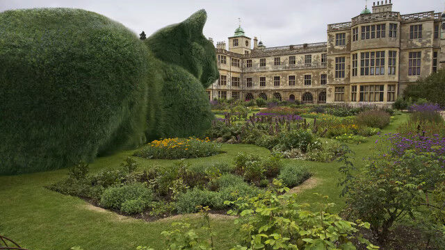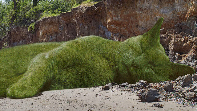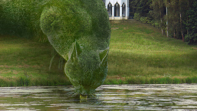 東イングランド、ハートフォードシャー州に住むシュールレアリスト、リチャード・サンダースさんがある庭園を撮影し、家で写真を眺めていた時、丸く刈られた植物、トピアリーが丸まっている動物のように見えた。
