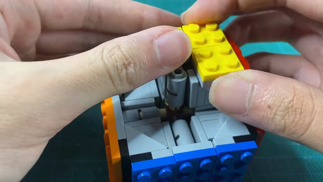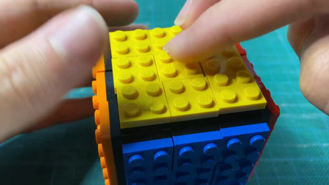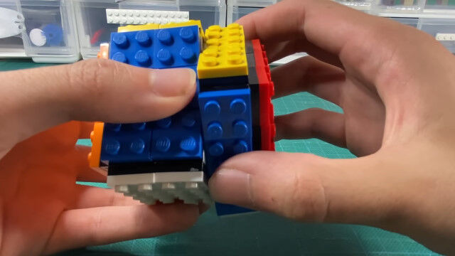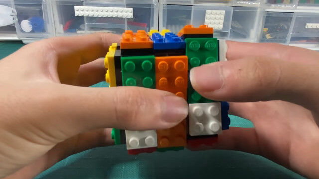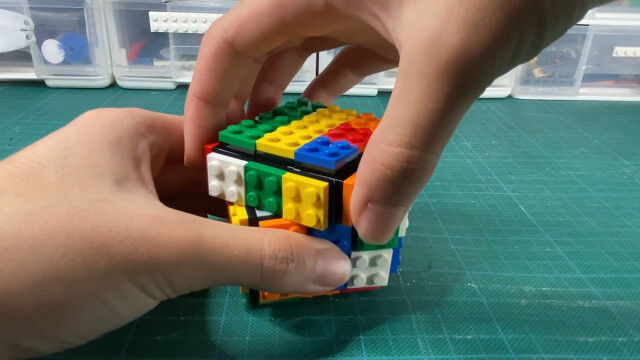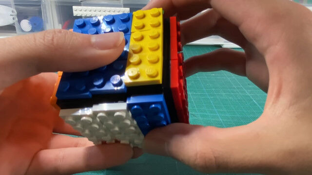 レゴパーツだけを使い、試行錯誤した上で組み立てた、レゴ製ルービックキューブ。