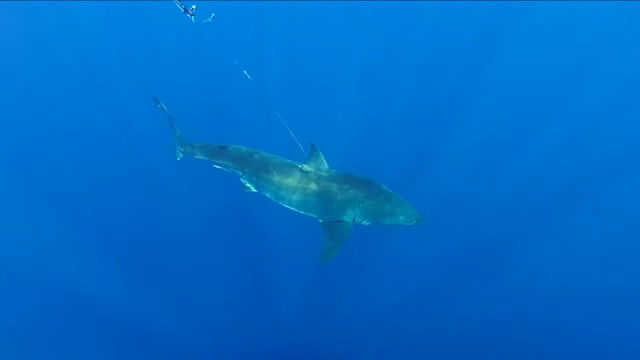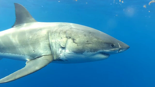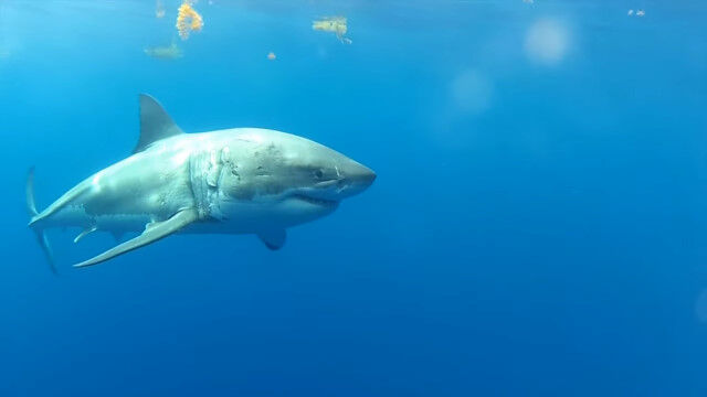 巨大ザメの顎が目の前に!とんでもない迫力のホオジロザメの水中映像が撮影される