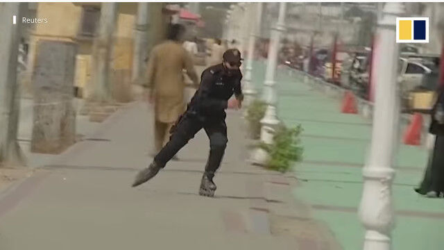 #ローラーブレードで犯人を追う武装警察部隊。パキスタン最大の都市、カ�