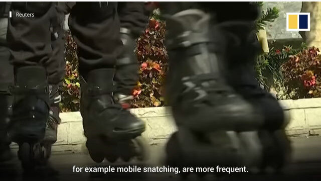 路上ではバイクに乗った犯人が携帯電話などを盗むひったくりが多く、パトカーでの追跡は困難。