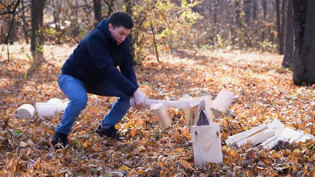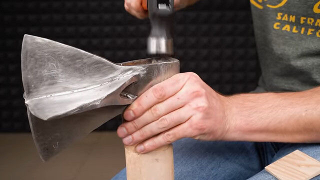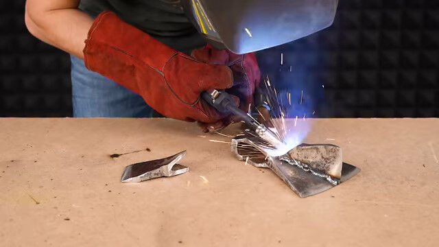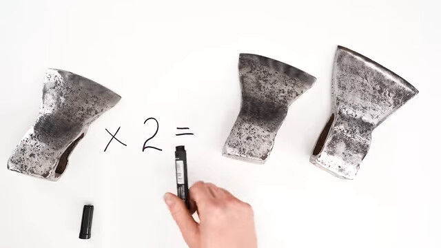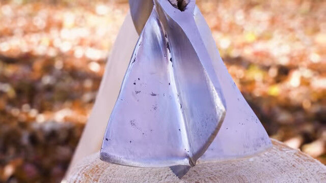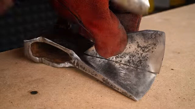 しかし、もう1本の斧の刃を切断、溶接して十字の刃にすれば、一振りで4つに割れて作業効率2倍!