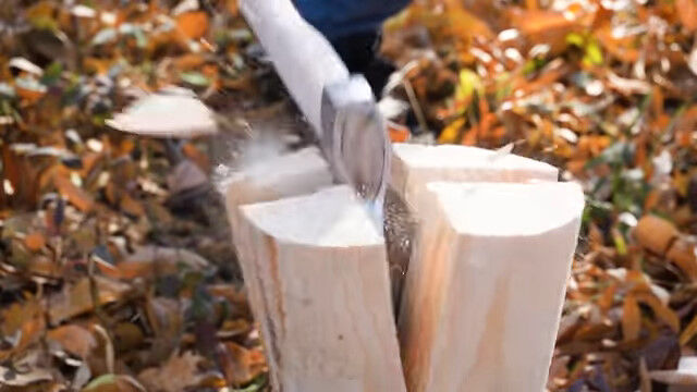 薪を割ると同時に左右に引き裂く。刃に特殊なギミックを組み込んだ斧「チョッパー・ワン」が面白い