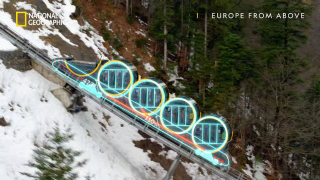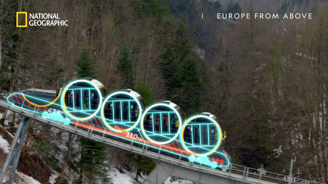 円筒形の客車を連結させた構造が特徴的で、急勾配の坂道を走っている時でも、勾配にあわせて客車内部が傾くため、水平な状態を保つことができる。