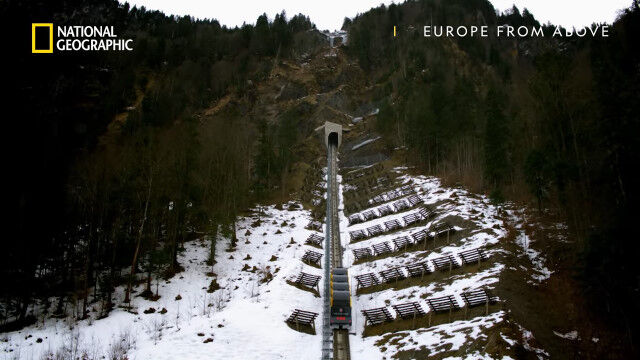 恐ろしいほどの急勾配を降りていくスイスのケーブルカー、ゲルマーバーンからの景色