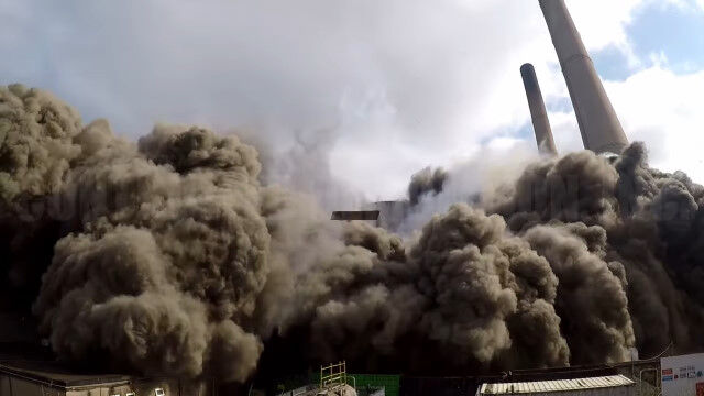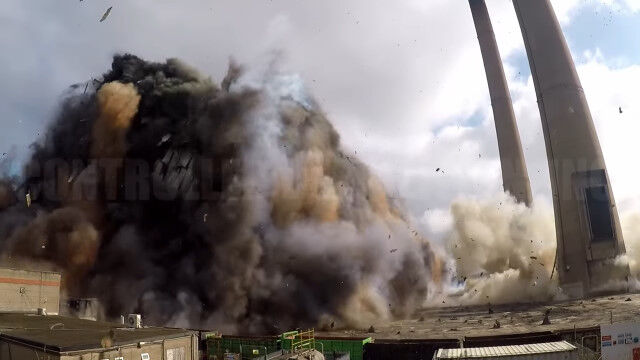 #イングランドにある発電所の爆破解体を、ドローンで至近距離から撮影