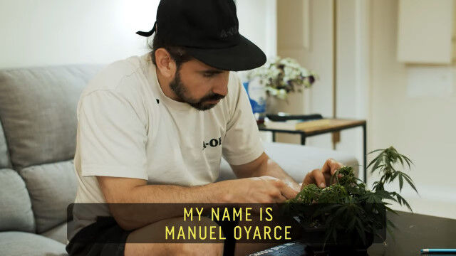 大麻を育てる過程を盆栽として楽しんでいる、マヌエル・オヤルセさん。