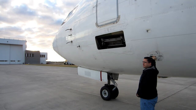ボーイング社の小型ジェット旅客機、ボーイング737に格納された階段、
