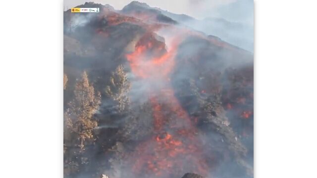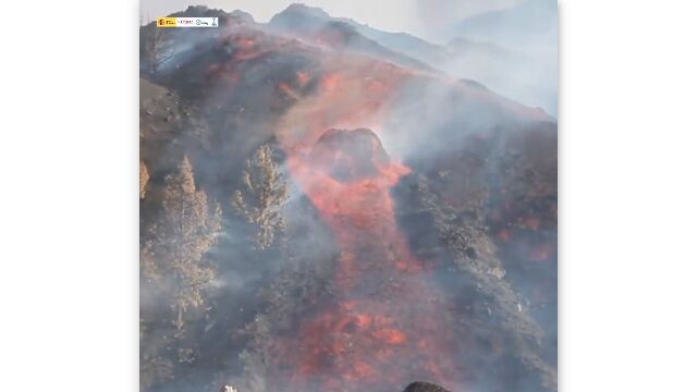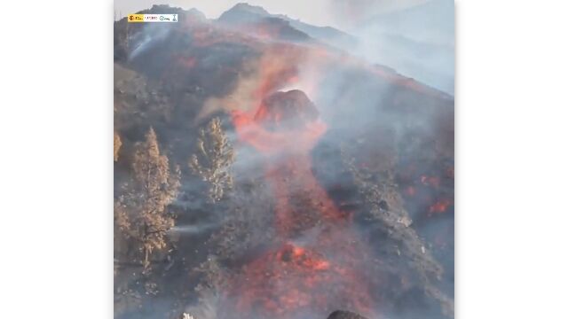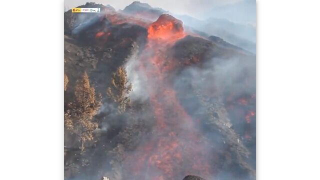 Spains Geological and Mining Institute released this footage of a huge molten Boulder sliding down Cumbre Vieja Volcano yesterday