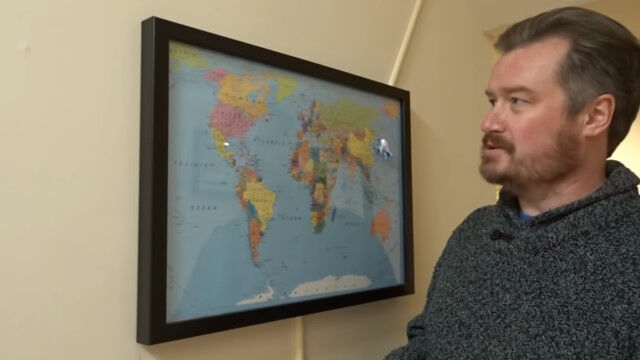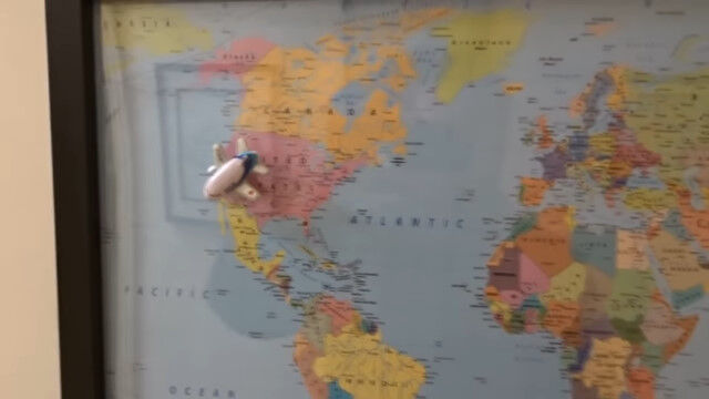 世界地図の上に磁石で張り付いている飛行機を動かすと、その場所のライブ映像が窓に映し出される。