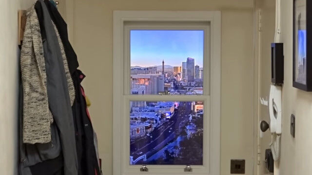 自分の立ち位置をセンサーが感知して、風景の角度がちょっと動くので、本物の窓のように感じられる。