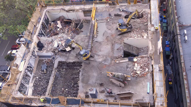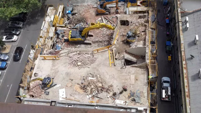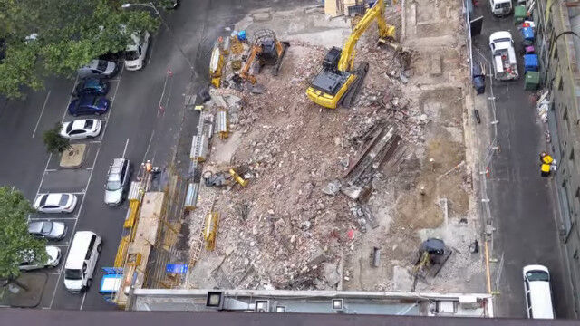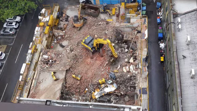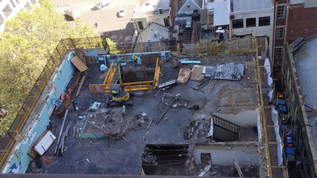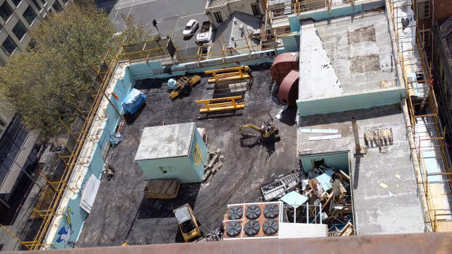オーストラリア、メルボルンにある5階建てのビルを解体する様子を、隣のビルの上から撮影。