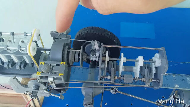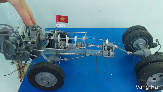 本物の車と同じようにギアやステアリングの仕組みを作っているため、運転席でハンドルやシフトレバーを操作することで、速度や方向を変えることができる。