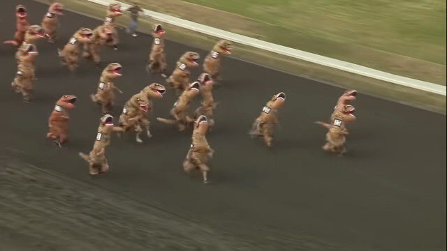 VIDEO: Dinosaurs take the track in viral T-Rex races