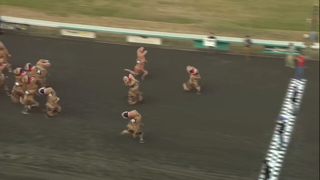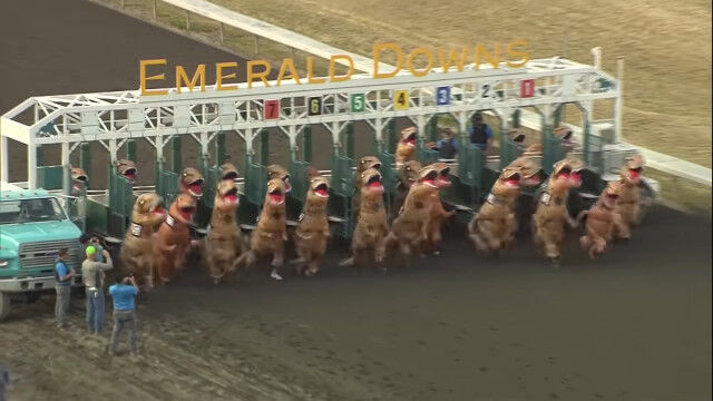 #恐竜たちを競馬場で競わせるレース。アホっぽいけど面白い