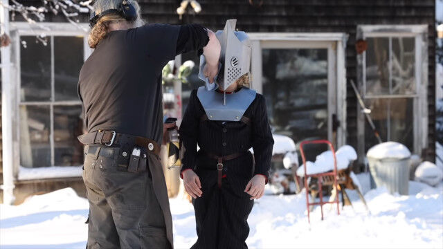 #頭突きが斬撃になる、顔面に斧を装着した兜