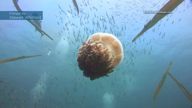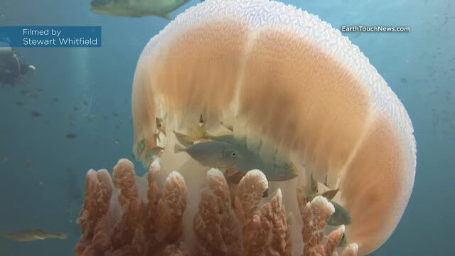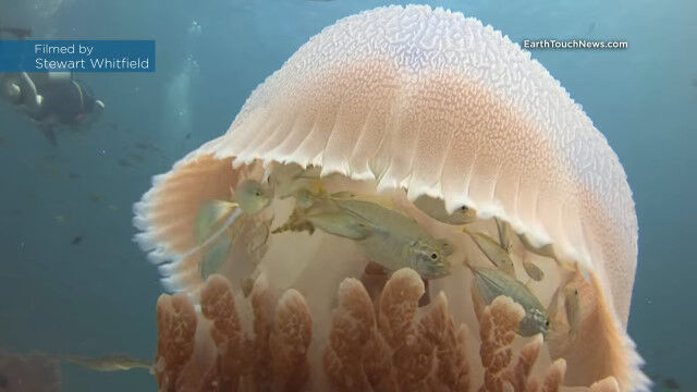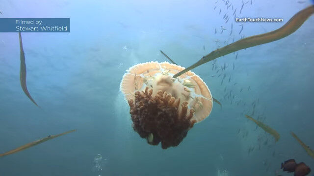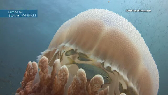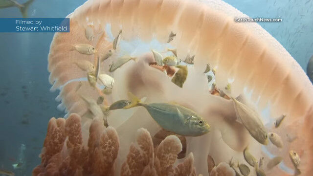 Jellyfish becomes a floating safehouse for tiny fish!