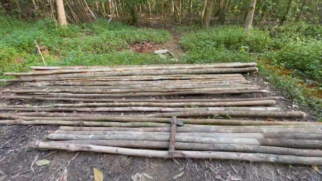 葉っぱ屋根の小屋はこれまでにも何度も建てているだけあって手慣れたもので、大きな小屋でも上手く足場を作って建てていく。