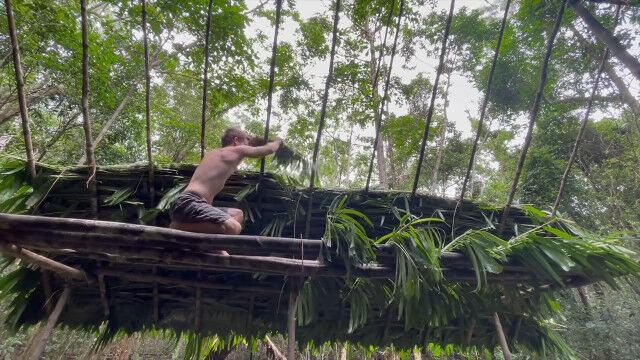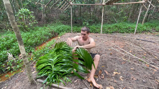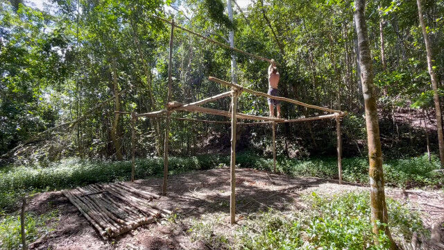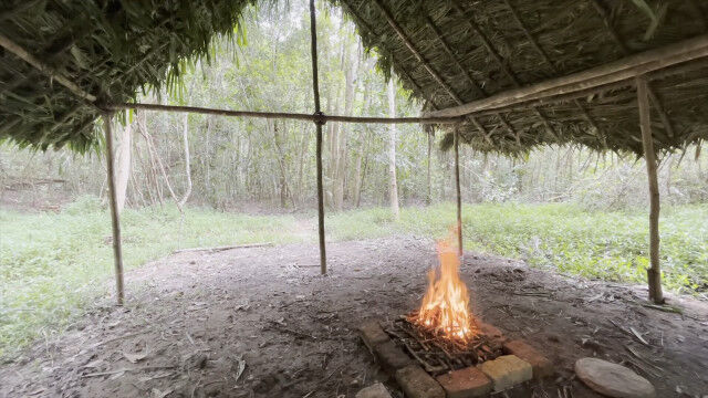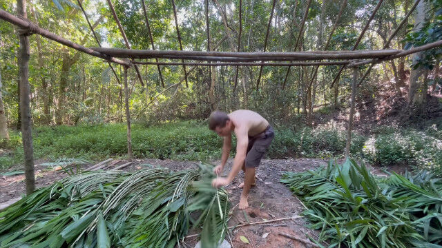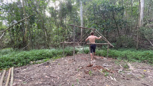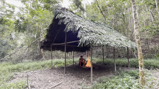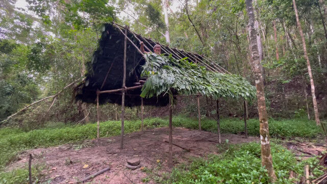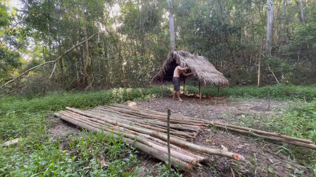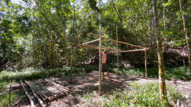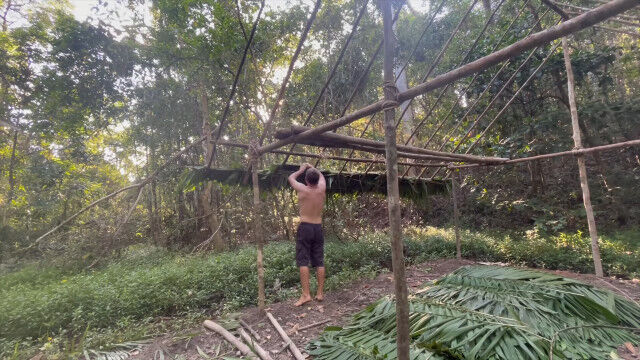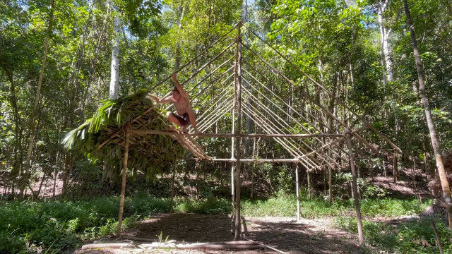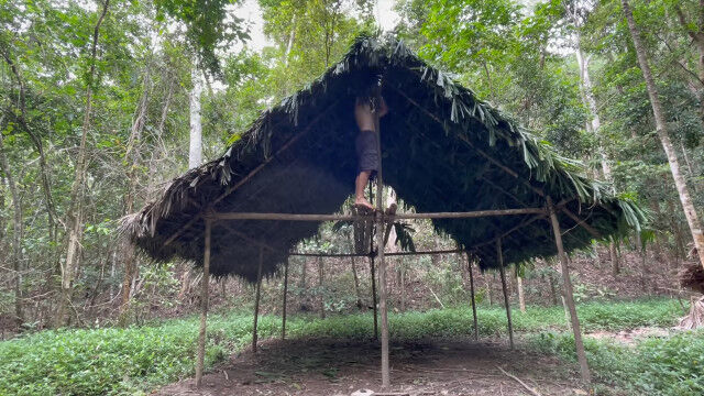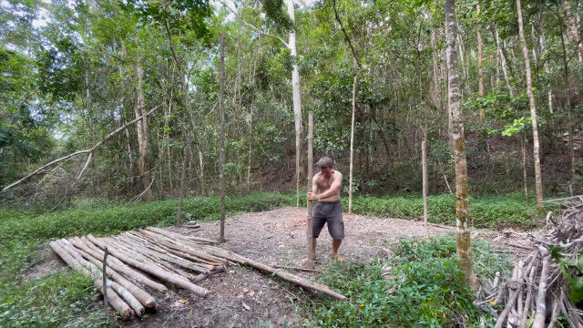 趣味として原始生活を営み、原始的な技術の数々を研究・実践するお兄さんが、以前建ててだいぶ古くなった小屋を解体、さらに大きな小屋を製作。